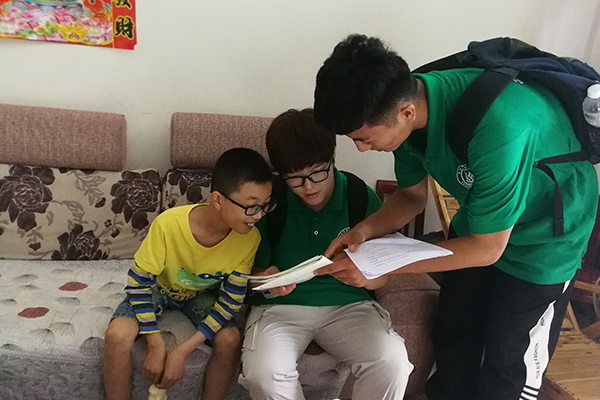 队员们在入户走访中过程发现,虽然时值暑假,但孩子们大多都在家看书,或者做暑假作业,由此可以看出孩子们的求知欲非常旺盛,对学习也都很有热情,这令队员们非常欣慰。队员们耐心为孩子们解决难题,家长们也非常感动。每个孩子都有自己擅长和不擅长的科目,队员们帮家长出谋划策,针对每个孩子的情况提出了一些合理的建议。在走访中,队员们还教孩子们读英语课文,在这过程中队员们发现,这里的孩子们对英语的发音理解不够,缺乏练习,这将对他们以后的英语学习不利,同时这也侧面反映出乡村教育资源的匮乏。于是队员们建议家长利用教材资源多让孩子们听英语,并练习模仿,有余力的可以学习音标,并教有条件的家长搜索免费的网络课程。