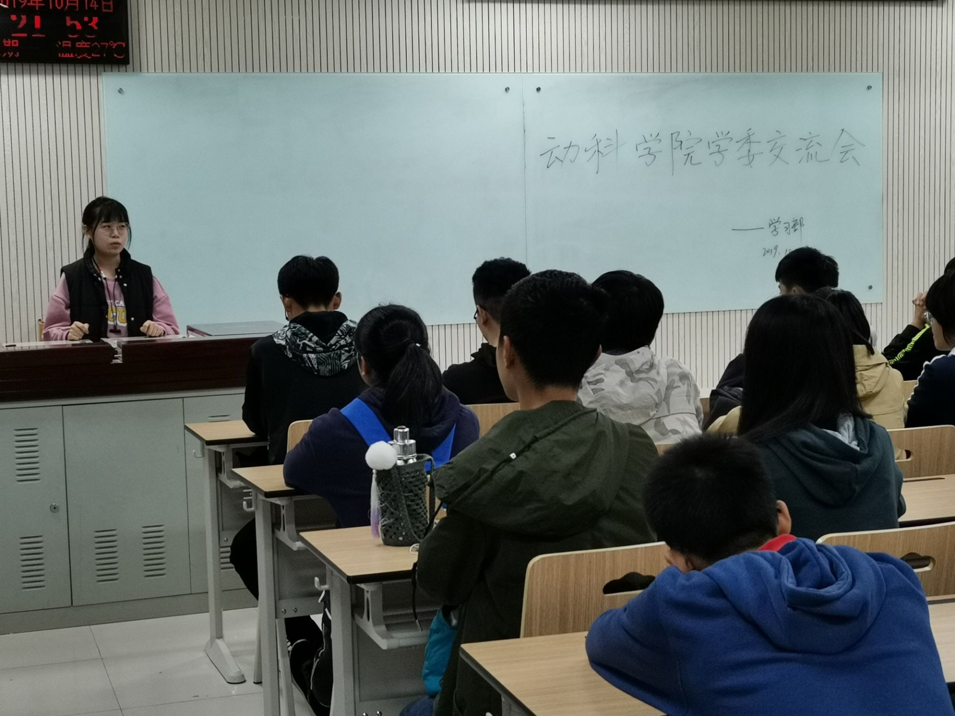 会上,学习部负责人王坤就本次会议的目的进行说明,即加强同学们与学习部之间、18、19级学习委员间的交流。随后各班学习委员踊跃发言,会议氛围十分活跃。19级学习委员指出目前新生的学习问题主要集中在同学们晚上玩手机,不能平衡学习与生活及优良学风建设。针对这些问题,18级的各位学习委员给他们提供了若干良好的建议与方法,指点新同学该如何把握各学科的要点,还分享了自己的工作经验,譬如留出来一定的弹性时间收作业,学委更应该以身作则等良好建议。会议中,学生会主席魏雪峰也交流了有关自己做学委的经验和心得,提出了要多和上一届学长学姐交流的好方法。学习部负责人张琪悦和王坤就请假事宜又做出了详细的解释,18级学习委员张冬杰和刘建明同学就学风建设提出了自己的见解,得到了19级学委的热烈的掌声。