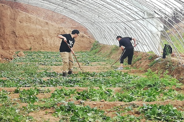 下午两点整,队员们集合完毕,整装待发。在与合作社负责人联系后,了解到了队员们在此次活动中需要帮助合作社农户完成果园、大棚等护理工作,其中农户正进行土壤保养工作。队员们对土壤保养工作做了提前了解。