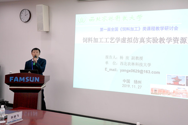 会议按照教育部“新农科”建设的总体部署,围绕饲料加工课程教学大纲的定位、内容设置与教学要求、教材编写、教学方法改革与创新经验等进行了积极的探讨与深入交流,并举行了举行了“饲料工程”本科(工学)学科设置论证评审会。国产在线 动物营养与环卫系教师杨欣副教授应邀在会上作了《饲料加工工艺学虚拟仿真实验教学资源建设》报告,从虚拟仿真教学的必要性、建设思路及特色等方面进行详细分享,受到与会专家广泛关注和认同。