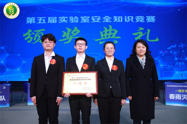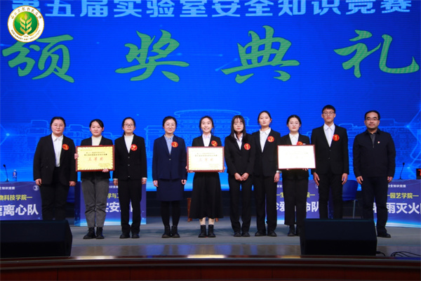 实验室安全与条件保障处处长卢涛为荣获优秀奖的参赛队伍颁奖
