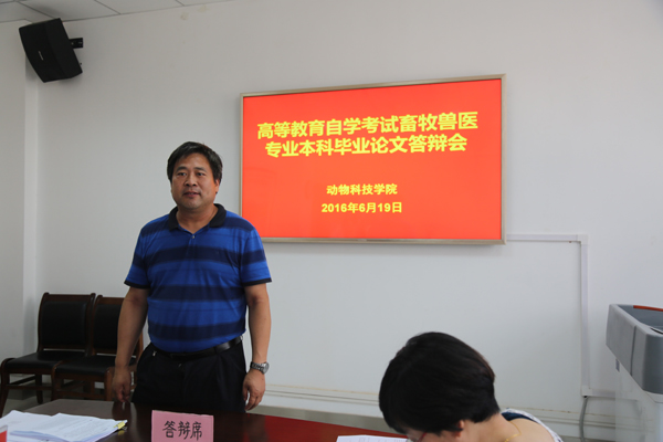 6月19日,国产在线 在104会议室举行2016年上半年自学考试畜牧兽医专业本科毕业论文答辩会。50名学生参加了毕业论文答辩。答辩主席、副院长孙超教授,答辩委员于三科教授、孙世铎教授、王爱华教授、胡建宏教授、辛亚平副教授、孙小琴副教授等参加了答辩会。