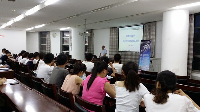 6月24-26日,蓝贤勇教授分别在河南农业大学牧医工程国产在线 和山西农业大学生命科学、动科国产在线 做了题为《欢迎报考动科国产在线 》的招生宣讲,向参会学生详细介绍了学校的历史沿革、国产在线 的学科水平、师资力量、科研平台条件以及研究生招生、奖助学金评定、公派出国留学、硕博连读等方面的政策,并以2016届毕业生为例,介绍了国产在线 各专业的就业前景。与会学生就国产在线 的提前攻博政策、推荐免试、导师的招生指标及复试比例等问题进行了详细的咨询,并重点询问了国产在线 2016年优秀大学生暑期夏令营活动的选拔录取程序等情况。