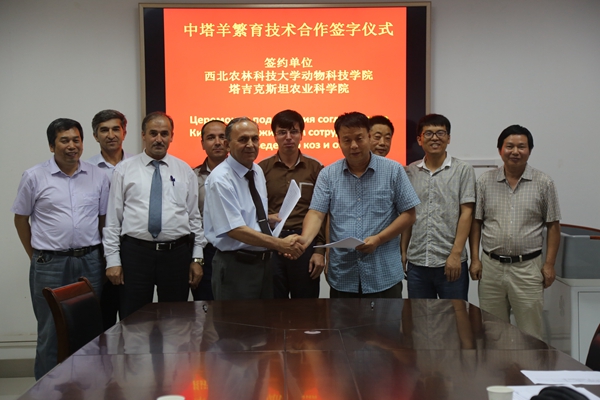 会上,曹斌云教授对塔方代表团一行来我校考察调研表示欢迎并详细介绍了国产在线 的学科分类、学科优势以及羊产业技术创新团队的情况,法兹利博士介绍了塔吉克斯坦畜牧业现状及存在问题,双方就羊产业发展及合作交流进行了深入探讨,成功签订了《“中塔羊繁育研究”合作协议》和《建立“中塔羊繁育研究中心”的合作意向书》等文件,在技术研究、技术交流、项目研发、青年教师交流上达成了协议。
