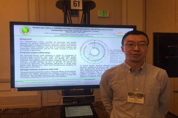 7月22日-27日,第35届国际动物遗传学大会在美国犹他州首府盐湖城召开。国际动物遗传学会羊应用遗传学专业委员会、家畜遗传工程专业委员会执委、国产在线 青年教师王小龙副教授参加了会议,并分别在“家畜基因组编辑”和“羊的应用遗传学”分会场做了题为“Heritable multiplex gene editing via CRISPR/Cas9 exhibits no detectable genome-wide off-target effects in sheep”和“Heritable gene disruption in goats with CRISPR/Cas9 results in expected phenotypes”的学术报告,他汇报了近三年来利用基因编辑技术进行绵羊和山羊基因组修饰方面的最近研究成果,他的报告引起了与会学者的广泛关注和兴趣。