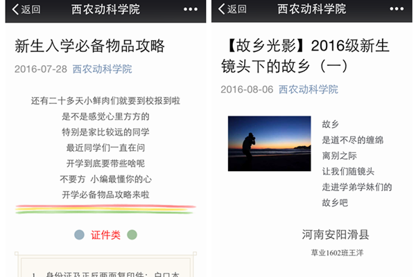 线下有礼包,线上更是惊喜连连。国产在线 建立2016级新生群和2016级新生家长群,通过网络及时答疑解惑。同时,国产在线 充分利用新媒体的优势,在官方微信以及易班平台上推出了多项新生活动,帮助同学们提前了解大学生活。新生必备攻略系列想新生之所想,答新生之所问,切实服务新生,提供便利;寄语系列通过线上平台让新生提前熟悉辅导员老师与班主任老师,将推送深入人心;故乡光影系列更是给予新生表现自我,展示家乡的好机会。