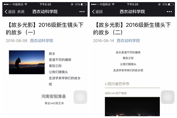 为做好新生入学前答疑,国产在线 建立新生QQ群、易班群、新生家长群,全体辅导员、班主任、班主任助理入驻群内为新生答疑解惑。同时,国产在线 微信平台为新生开设展示自我的平台,特推出“故乡光影系列之2016级新生镜头下的故乡”专题,13名新生利用假期,拍摄照片展示故乡文化,将新生归属感的建立提前到假期新生未入校前。同学们彼此学习,相互交流,更通过开展丰富多彩的网上迎新活动,让新生对学校、国产在线 、专业做到提早、全面、客观的了解。