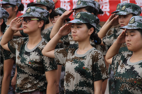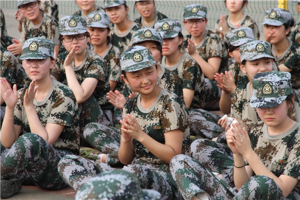 声声相应,唱出昂扬精神风貌;排排迷彩,成就校园独特风景。