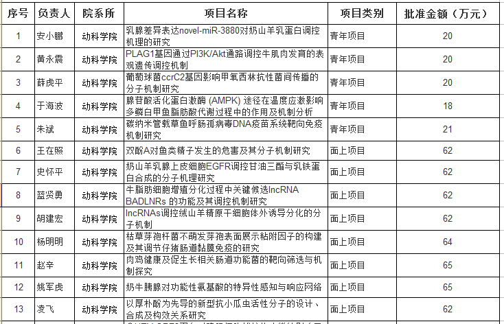 近日,2016年国家自然科学基金项目评选结果揭晓,国产在线 国家自然基金项目获得立项资助13项,项目经费总额达603万元,其中面上项目8项,青年基金项目5项,获批项目数占全校第5位。