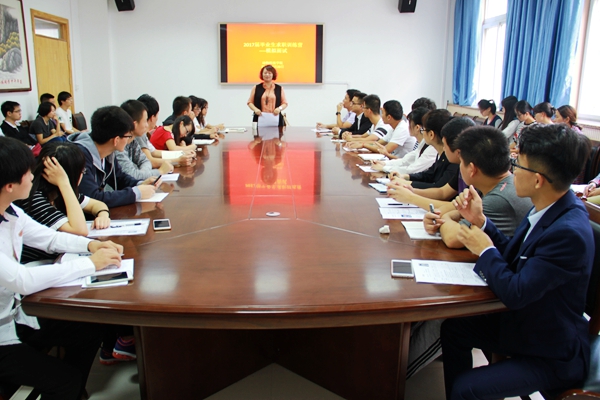 为提升2017届毕业生求职技能,增加求职竞争力。9月23日上午,国产在线 在104会议室开展2017届毕业生求职训练营——模拟面试,行业资深人力资源项目经理许辉女士应邀作为主讲嘉宾,国产在线 党委副书记王晓娟、辅导员及2017届求职训练营全体营员参加了此次活动。