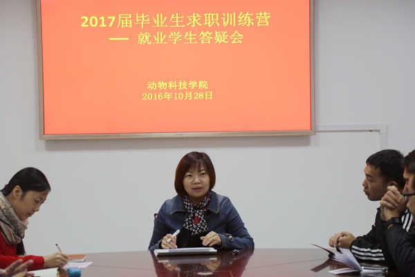 前期,国产在线 领导、辅导员深入学生宿舍,通过与2017届毕业生一对一交流,了解求职学生就业意向和签约情况,46名就业意向学生中,32名学生通过参加近期的各类招聘会已经应聘成功或等待签约,7名学生准备公务员考试,7名学生就业方向还不确定。王晓娟副书记根据前期约谈询问、走访调查结果,详细解答每位学生在求职中遇到的难点与疑问,尤其是针对少数民族、求职意向模糊、公务员考试等学生的个性化化问题进行详细解答。王晓娟副书记结合自己多年的工作经验,强调“我们的专业就是我们的特长”,鼓励同学们从基层做起,掌握技术,积累经验,增强自己的不可替代性;树立正确的职业价值观,在工作地域、岗位类型、薪资待遇、个人发展等方面选择时,结合自身爱好与兴趣,选择与自己价值观念匹配并适合自己的工作岗位。草业131班祁彦文同学表示:目前自己已经拿到多家企业的录用通知,但是仍很难抉择适合自己的岗位,此次答疑会使自己明确了方向,更加坚定农牧行业的基层锻炼,提高自己专业性和不可替代性!
