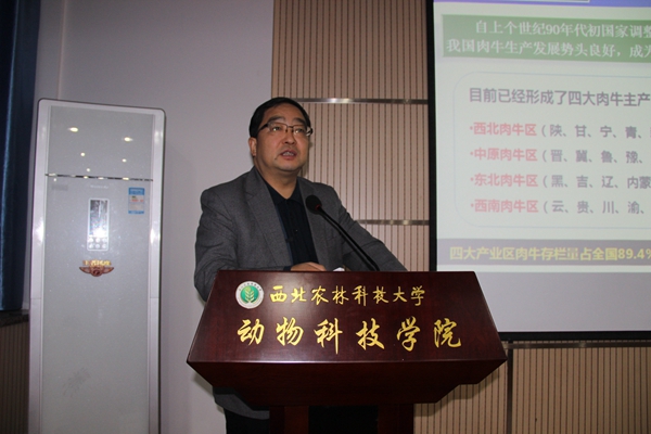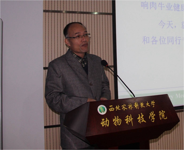 昝林森教授主持报告会并做“中国肉牛遗传改良策略及应注意的几个问题”的大会报告