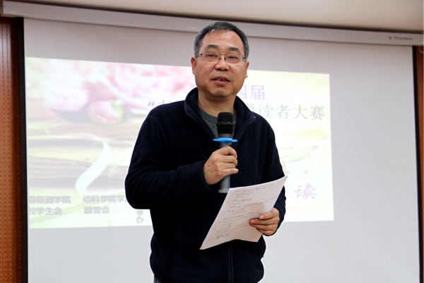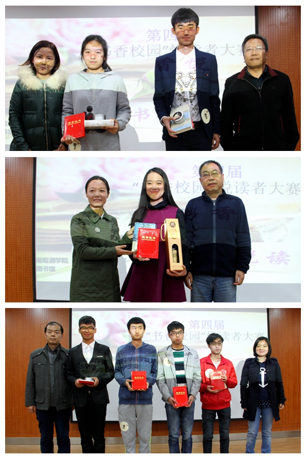 自10月18日起,“书香校园”悦读者大赛陆续开展“书香满月”、“名家讲座”、“美酒遇上书”、“书海千帆”等活动,历时一个月的“书香校园”悦读者大赛决赛在食品楼六楼报告厅举办。马克思主义国产在线 教授方建斌、马克思主义国产在线 副教授胡尊让、图书馆党总支副书记赵运良老师、人文国产在线 刘娟老师、就业指导中心副主任白金凤老师、学生处副处长马宁老师、校团委副书记师燕妮老师以及葡萄酒国产在线 党委副书记邓亚丽老师应邀出席并担任本次决赛评委。经初赛、复赛共10名学生进入决赛,国产在线 草业162班薛志鹏荣获二等奖,动科152班蔡魌健荣获三等奖,草业162班孙鹏越获得优秀奖。