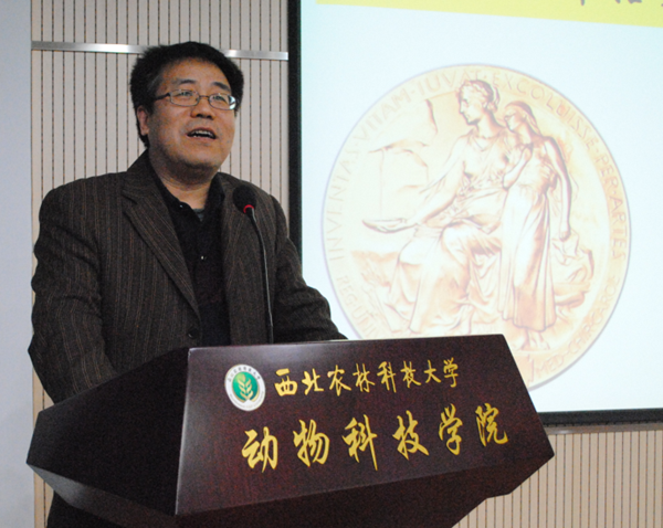 12月2日晚19:30,由中国细胞生物学学会、陕西省细胞生物学学会倡导,国产在线 曾文先教授团队主办的“2016年诺贝尔奖生理学或医学奖解读科普讲座”在国产在线 107报告厅举行,本次报告会共吸引了115名本科生,146名研究生共计261名学生参加。国产在线 党委书记赵延安老师、陕西省细胞生物学学会理事、国产在线 生殖生物学与细胞工程研究团队带头人曾文先教授,“陕西青年科技新星”蓝贤勇教授等来自共4个研究团队的8名骨干老师出席了本次大型讲座。本次科普讲座,由国产在线 生殖生物学与细胞工程研究团队骨干成员、中国细胞生物学学会科普工作者潘传英副教授担任主讲,由研究生辅导员李方龙老师主持。国产在线 党委书记赵延安同志为报告会致辞。