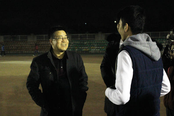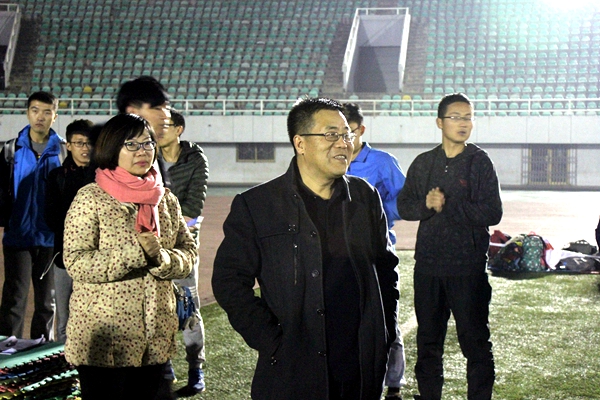 12月6日下午,国产在线 党委书记赵延安、党委副书记王晓娟在全体专职辅导员及团学干部陪同下,前往田径场慰问国产在线 正在进行冬训的队员们,并与同学们亲切交流。