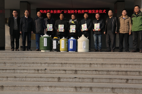 12月30日,陕西省重大农技推广试点计划牛产业项目组奶牛性控冻精发放仪式在我校举行,学校科技推广处吴锋副处长、国产在线 院长姚军虎教授、项目首席专家昝林森教授,以及校畜牧教学试验基地奶牛场、杨凌核心试验站、西安草滩牧业有限公司、铜川林惠奶牛养殖有限公司、陇县恒泰牧业奶牛养殖专业合作社等项目承担单位负责人、技术人员和学校包抓专家等参加了发放仪式。