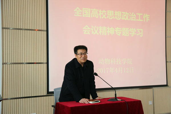 方建斌从坚持社会主义办学方向、提高学生思想政治素质、推动高校思想政治工作改革创新、坚持党的领导等方面详细解读了全国高校思想政治工作会议精神,并对“四个挑战”、“四个服务”、“四个坚持不懈”、“四个正确认识”进行了具体阐释。方建斌强调,专任教师要按照会议精神,坚持教书和育人相统一、言传和身教相统一、潜心问道和关注社会相统一、学术自由和学术规范相统一,守好一段渠、种好责任田,做到以德立身、以德立学、以德施教,更好担起学生健康成长指导者和引路人的责任。