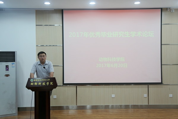 6月20日下午,国产在线 2017年优秀毕业研究生学术论坛在107学术报告厅举行。山东农业大学李福昌教授、我校生命科学国产在线 陶士珩教授、动物医国产在线 王华岩教授、杨鸣歧教授、童德文教授担任论坛评委。院领导赵延安、昝林森、孙超、王晓娟、王力及部分教师、研究生100余人参加了本次论坛。论坛开幕式由院长助理凌飞副教授主持。