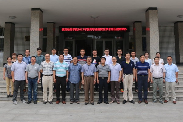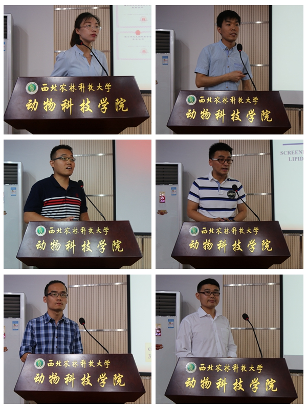 学术报告分别由孙超教授、张恩平教授主持。来自动物遗传育种与繁殖、动物营养与饲料科学专业、草学、水生生生物学、动物学、特种经济动物饲养6个专业的12名2017届博、硕士毕业研究生分别以“奶山羊乳腺组织乳脂代谢关键miRNA的筛选及功能验证”、“circLMO7竞争性吸附miR-378a-3p调控肌细胞增殖、分化的机制研究”、“鸡胚给养维生素C对肉鸡脾脏发育和免疫功能的影响”、“奶牛乳腺炎中葡萄球菌甲氧西林抗性传播的机制研究”、“基于多组学的秦川牛、黑毛和牛、安格斯牛及大额牛遗传特性研究”等为主题做了精彩的学术报告。李福昌教授等5位评审老师对报告人的研究方法、结论凝练等方面进行了现场点评。