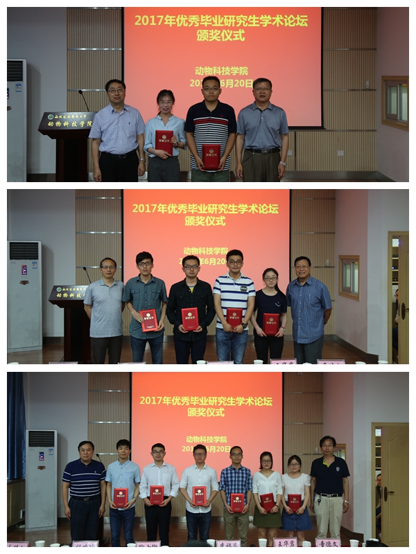 最终根据专家组的现场打分,动物营养与饲料科学专业博士研究生李世召、草学专业博士研究生付娟娟获一等奖;水生生物学专业博士研究生侯富军、雷彩霞、动物遗传育种与繁殖专业博士研究生陈志、硕士研究生牛怡源获二等奖;动物营养与饲料科学专业博士研究生刘丕龙等6人获优秀奖。