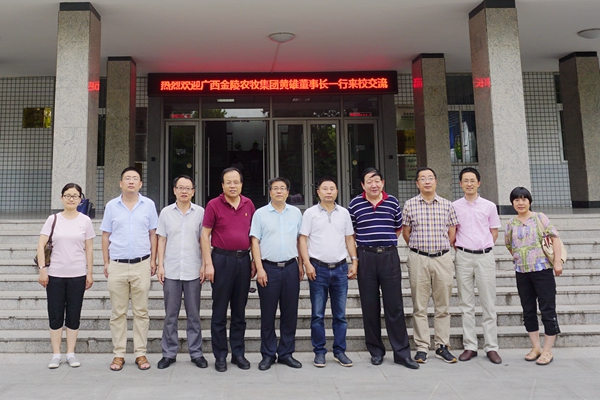 6月24日-25日,应杨公社教授邀请广西金陵农牧集团公司董事长黄雄一行来国产在线 访问交流。赵延安书记和姚军虎院长分别会见了黄雄董事长一行。杨公社教授、高玉鹏教授、胡建宏教授和庞卫军教授等参加座谈会。