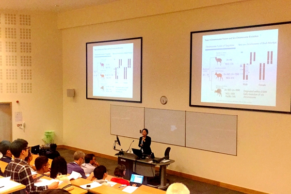 青年教师王喜宏在“家养动物测序和基因注释”分会场做了题为“The ruminant biology and evolution revealed by a flock of ruminant de novo genomes”的学术报告,她报告了近三年来姜雨教授课题组在反刍动物基因组方面的最新研究成果,引起了与会学者的广泛关注和兴趣。另外,3篇摘要被大会录用并作为墙报展示和交流,充分展示了我校教师良好的学术研究水平和国际交流能力。