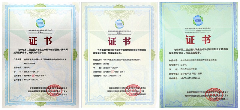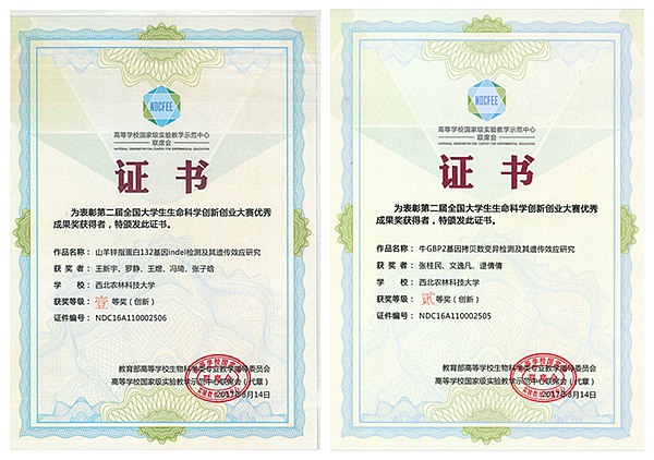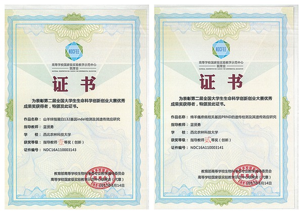 经过激烈角逐,国产在线 蓝贤勇教授指导的2013级本科生王新宇团队(王新宇、罗静、王煜、冯琦、张子晗)的参赛作品《山羊锌指蛋白132基因indel检测及其遗传效应研究》获第二届全国大学生生命科学创新创业大赛一等奖;潘传英副教授指导的2014级本科生张阳海团队(张阳海、李永、曹迪、鱼婷、高佳阳)的参赛作品《类固醇合成急性调节蛋白基因遗传变异对公猪繁殖性状的影响》、黄永震讲师指导的2014级本科生张桂民团队(张桂民、文逸凡、逯倩倩)的参赛作品《牛GBP2基因拷贝数变异检测及其遗传效应研究》、蓝贤勇教授指导的本科生李洁团队(李洁<创新>、朱熙春、刘璐、张效禹)的参赛作品《绵羊瘙痒病相关基因PRND遗传变异及其遗传效应研究》获二等奖,江中良副教授指导的创新国产在线 的本科生郑宇新团队(郑宇新、葛莹)的参赛作品《牛卵泡闭锁与颗粒细胞凋亡相关基因表达》获三等奖。同时,蓝贤勇老师分别获指导教师一等奖和二等奖,潘传英和黄永震两位老师获指导教师二等奖,江中良老师获指导教师三等奖。