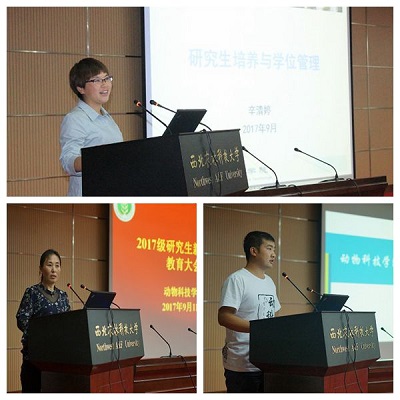 姚军虎教授对全体2017级研究生加入动科大家庭表示了欢迎,并从国产在线 发展规划与学科建设方面深刻诠释了国产在线 创建世界一流国产在线 的发展战略;赵延安书记引经据典,从哲学的角度阐述了校情校史,并以“畜德自牧,富饶天下”为中心向同学们展示了国产在线 深厚的文化底蕴;王晓娟副书记从人身和财产安全、车辆使用安全、信息安全、宿舍安全、实验室安全等5个方面,结合实例说明了安全稳定的重要性,提醒大家提高警惕,保护自己;院长助理凌飞强调了学术诚信的重要性,通过四个事例向同学们讲述了学术造假的严重后果,并要求全体研究生要将学术诚信和学术道德规范摆在科研工作的第一位;研究生秘书辛清婷、研究生干事张飞分别从研究生培养与学位管理、培养计划制定和课程规划等方面详细解读了学校和国产在线 的相关政策;辅导员张涛和研究生会团工委副书记李亚新就资助制度和日常管理条例、研究生会职能向2017级研究生做了介绍。