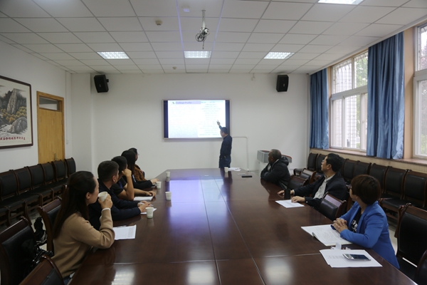 孙秀柱副教授向留学生介绍了国产在线 的基本情况,他主要从国产在线 历史沿革、学科建设、本科教学、科研推广、社会服务、国际交流、科研基地等七个方面进行了讲解,并就留学生提出的问题进行了交流和探讨。