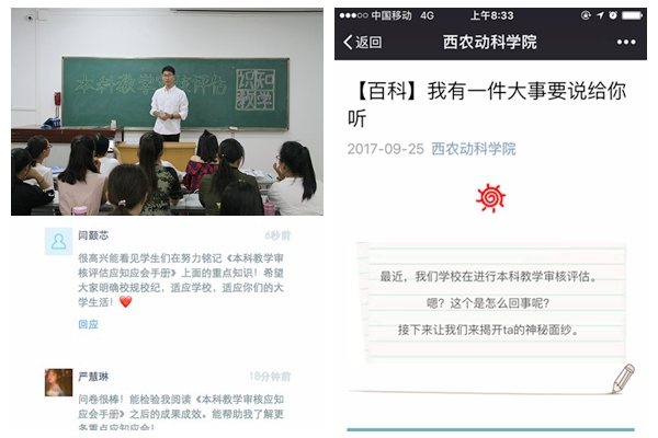 为进一步加强学生对本科教学审核评估的深入了解,在全院范围内营造“人人关心评估、人人了解评估、人人参与评估、人人支持评估”的浓厚氛围。近期,国产在线 通过线上线下、班会讨论等灵活多样的形式开展本科教学审核评估应知应会知识普及,同学们参与其中、认真学习、全面掌握,为迎接评估做好全方位的充足准备。