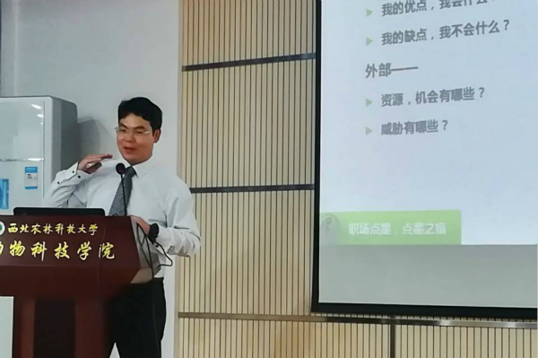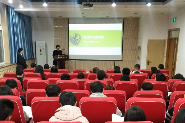 为了帮助学生了解职场形势,找准自身定位,并引导学生树立合理的职业生涯规划,10月10日晚7点,由学校就业指导中心主办,动科国产在线 承办的就业大学堂之“跨过职场懵懂期”专题讲座在国产在线 107会议室举办。明康汇生态农业集团总裁助理、海亮地产集团区域人事行政总监吴进应邀为近百名学生做报告。