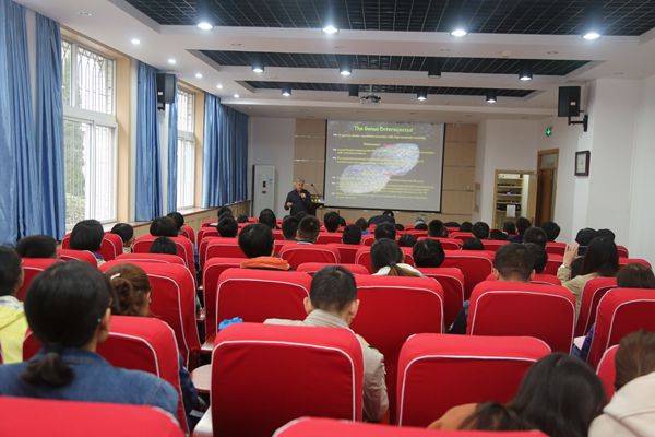 首先,Axel Hartke教授简要介绍了卡昂大学的发展历史与院系分布情况。随后,Axel Hartke教授重点就自己的科研进展及研究成果进行了汇报,他的研究内容主要包括抗菌肽对肿瘤细胞的杀灭作用,从而为治疗肿瘤疾病提供新的方法。Gérard Barroso教授主要从新型镰刀菌的快速筛选鉴定,毒素作用机理及调控措施以及真菌与食品安全的关联等方面的进行了系统的讲解。整场报告会座无虚席。会上,与会师生就相关问题与两位教授进行了充分的交流。两位教授的报告开阔了国产在线 师生对于抗菌肽与菌体的视野,对从事相关研究的师生有重要的借鉴作用。