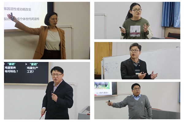 青年教师王喜宏声情并茂,条理清楚,将抽象的表观遗传学知识讲解得淋漓尽致。朱斌副教授思路清晰,组织严密,将复杂的草鱼出血病预防、诊断和治疗清晰地展现给现场每一个人,给大家留下了深刻的印象。王哲鹏副教授准备充分,材料丰富,从多个方面分析了富硒鸡蛋的营养价值和研究价值。其他参赛老师也通过生动的语言、丰富的肢体表现力,有层次、有重点地讲授专业知识。参赛教师们仪态端庄、精神饱满、讲授内容熟练、思路清晰、多媒体教学手段运用娴熟,充分展现了国产在线 青年教师的教学风采。