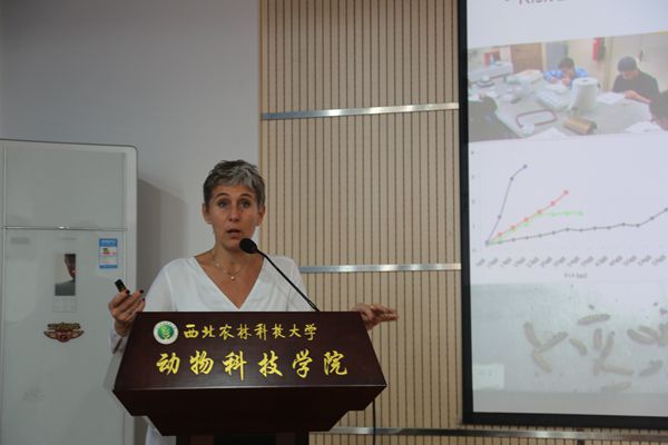 报告会上,Laura Gasco 教授首先介绍了都灵大学的历史背景及她们实验室的基本情况。她说全球普遍缺乏动物蛋白资源,而昆虫就是良好的资源,其长得快,节省空间,蛋白含量高。接着,她从昆虫资源营养特性、黑水虻养殖及其资源饲料化利用等方面做了重要介绍。报告会后与会师生就黑水虻繁殖特性、产业化发展等相关问题与Laura Gasco 教授进行了深入交流。Laura Gasco教授的报告使国产在线 师生了解了昆虫作为饲料原料的研究概况、面临的问题和挑战。对昆虫资源饲料化利用方面有重要借鉴意义。