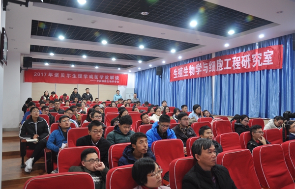 2017年诺贝尔生理或医学奖,颁发给了三位美国科学家——杰弗里·霍尔、迈克尔·罗斯巴什和迈克尔·杨,以表彰他们发现了生物体昼夜节律的分子机制。为了使广大师生更好地了解此项科研成果,以及其对自然科学研究的深远影响,12月2日,由中国细胞生物学学会主办,陕西省细胞生物学学会协办,国产在线 生殖生物学与细胞工程研究团队承办的“2017年诺贝尔生理学或医学奖解读”科普讲座在国产在线 107报告厅举行。