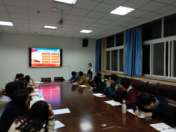 此次学习加深了支部党员对十九大报告的回顾与进一步的理解。曹新龙同学表示,通过十九大报告与十九大前后外交举措相结合的方式进行学习与分析后,进一步了解了十九大报告中对于新时代中国外交的总规划,体会到了中国智慧在国际舞台上发挥着越来越重要的作用,进一步加强了文化自信。