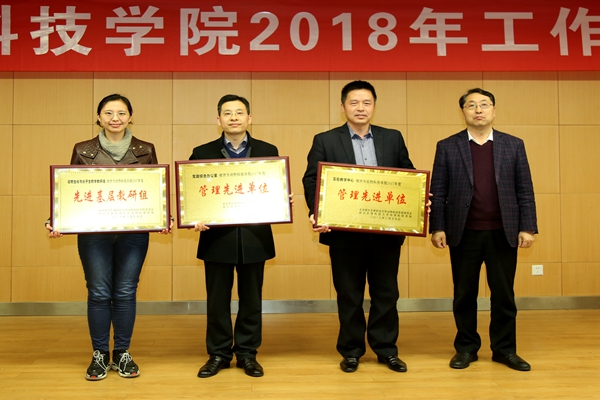 孙超副院长宣读《关于表彰2017年度先进个人、先进集体及单项工作先进个人的决定》。院领导姚军虎、王晓娟、王力分别为2017年度先进个人、先进集体及单项工作先进个人颁奖。