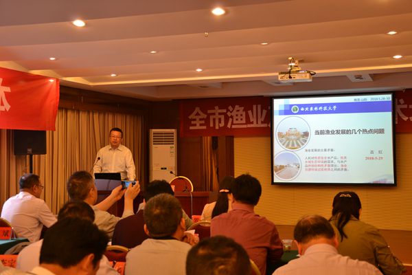 在服务团和商洛市渔政站共同组织的商洛市渔业扶贫技术培训班上,吉红教授、王明祥高级工程师、张星朗研究员等服务团专家分别作了《当前渔业的热点问题与对策》、《冷水鱼养殖技术与渔药的规范使用》和《大鲵健康养殖及水产绿色养殖新模式》的培训报告,受到与会人员的热烈欢迎。
