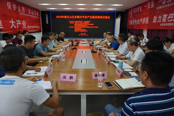 8月23日,由国产在线 安康水产试验示范站、安康市渔业局主办,安康市水产业技术创新战略联盟、陕西省科技特派员水产养殖产业技术服务团、镇坪县天源生态养殖有限公司承办,镇坪县饮源生态资源保护开发有限公司院士专家工作站、安康市渔业协会、科技部鱼跃汉水星创天地、安康市水产工程技术研究中心协办的“2018年秦巴山区多鳞白甲鱼产业建设现场交流会”在安康市镇坪县举办。来自安康、西安、宝鸡、商洛等市10余个秦巴县区的渔业部门领导、科研院所专家及水产养殖、加工、餐饮企业和合作社代表,拟开展水产养殖的贫困户代表等共计50余人参会。会议由安康市渔业局李志安副局长主持。