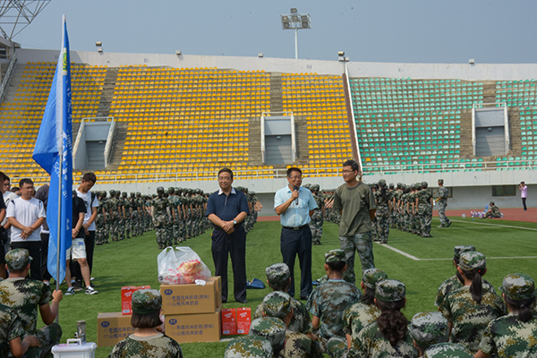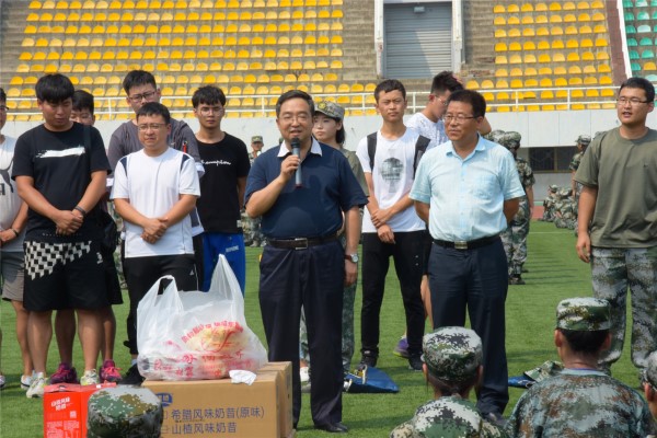 8月30日,国产在线 党委书记赵延安、副院长昝林森一行来到北校区田径场,亲切地慰问了军训教官和参训新生。