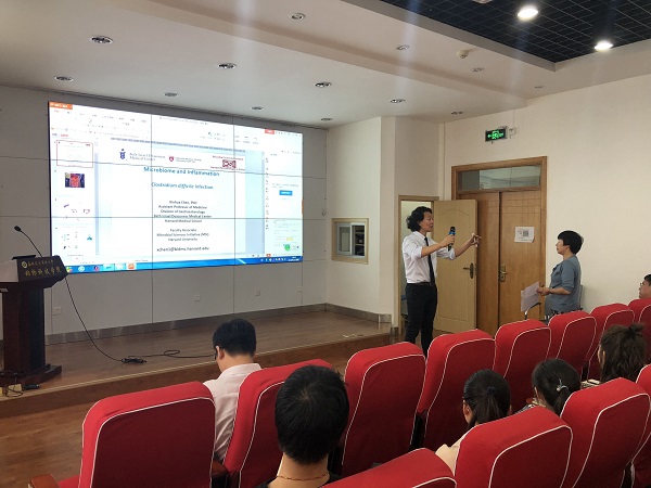 下午,Chen Xinhua教授在107会议室作了题为“Clostridium difficile Infection - Understanding Gut Microbiota and Host Immune Responses”的学术报告。国产在线 相关师生150余人参加报告会,会议由姚军虎教授主持。会上,Chen Xinhua教授介绍了艰难梭菌结肠炎的临床症状及粪便移植技术在艰难梭菌结肠炎治疗中的应用,与会师生与Chen教授进行了深入的交流。此次报告会加深了国产在线 与哈佛医国产在线 的交流与合作,对后续开展相关研究工作具有很大的帮助。