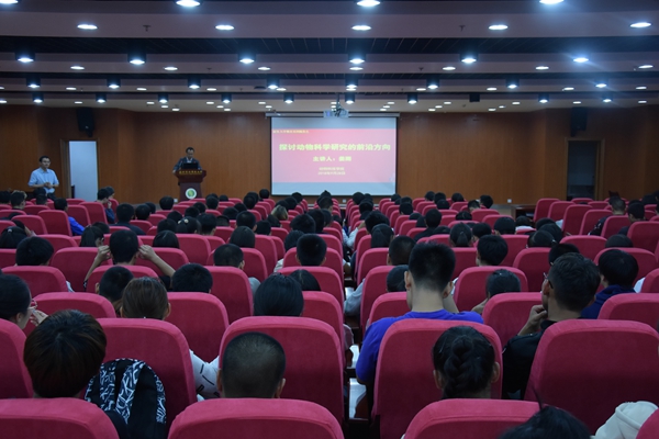 姜雨教授告诫同学们,科学研究最重要的是把握前沿科学的发展方向,进而明确自己的研究内容。他以“健美、健康、疾病”为切入点向同学们介绍了以“生命科学与人类健康”、“生命科学与数据”以及“合成生物学”为主的生命科学大方向,重点阐述了动物科学试验在生命科学研究、医学研究中的重要地位。大学求知阶段最重要的是要学会思考,未来是什么不确定。同时为同学们阐述了“什么是数据科学、怎样获取数据、分析数据、怎样创新变革生产力等科学前沿问题”。他希望当代动科人能够勇于创新,致力多产业结合,而不仅仅将专业知识局限在农业领域,要用所学知识为人类社会进步做更大的贡献。