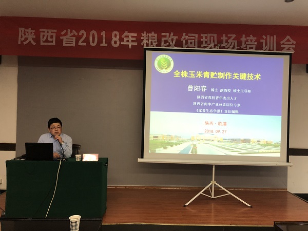 9月27日,由陕西省畜牧兽医局主办,陕西省畜牧技术推广总站承办的陕西省2018年“粮改饲”现场会在西安市临潼区隆重举行。会议由陕西省畜牧技术推广总站站长杨帆主持,全省承担粮改饲工作的5个市和14个区县主管局长和畜牧技术推广中心主任参会。国产在线 曹阳春副教授应邀出席现场会并作报告。
