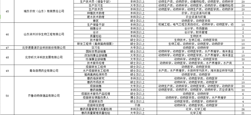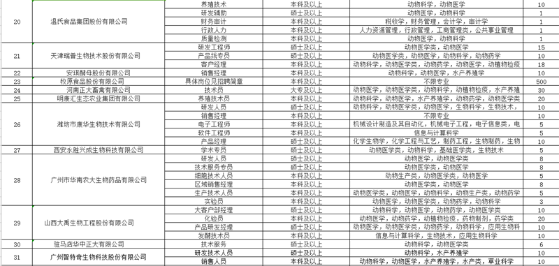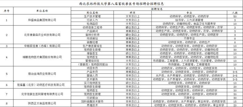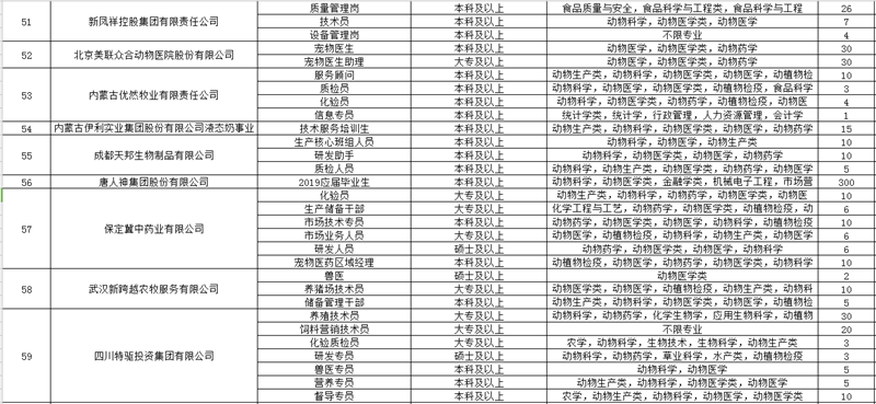 动科国产在线 、动医国产在线 将于11月24日在北绣山活动中心联合举办国产在线 第八届畜牧兽医行业招聘会,为2018届毕业生求职营造浓烈的氛围,为低年级学生开拓视野、提前了解行业发展提供广阔的平台。截止目前,已收到来自全国17个省(自治区、直辖市)的66家企事业单位的回执,累计提供就业岗位8289个,其中技术类岗位3122个,销售类岗位154个,其他类岗位5013个。不仅包括动物科学、水产养殖、饲料营养、动物医学、草业科学等专业,还包括食品科学与工程、食品质量与安全、生物工程、生物技术、信息管理与信息系统、环境工程类、会计学、市场营销、国际经济与贸易、人力资源、公共事业管理等人文类及机电相关专业。