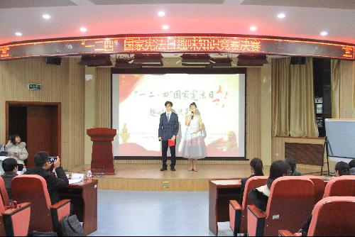 4日晚上,“12.4”国家宪法日趣味知识竞赛决赛如期举行,人文社会发展国产在线 魏欣副教授莅临本次比赛的嘉宾。竞赛第一项是“一站到底”环节,参加决赛的队伍由抽签系统随机分组进行两两竞答,每轮在大屏幕上显示五道题目,选手们拨打屏幕上给出的热线电话来进行抢答,既考验学生的知识储备,又对反应力有要求,比赛过程掌声连连;互动环节时,观众在观看一段法律知识视频后,抢答题目,大家热情高涨,纷纷举手回答问题获得小礼品;第三个环节是“运筹帷幄”,六支胜出队伍参与比赛,两两对抗进行答题,答对时可在棋盘上落子一枚,答错则由对方落子,先行完成五颗棋子连在一起的队伍胜出。