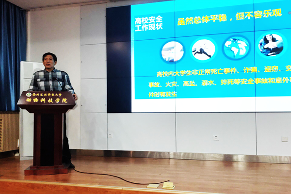 12月18日,国产在线 研究生第九党支部为落实学校党委研究生工作部、科研院、保卫处《关于开展研究生“实验安全教育月”活动的通知》,增强团队研究生的安全意识,营造更安全的实验室环境,特邀请校保卫处副处长王云峰作题为“消除隐患、防治危难——高校安全管理与实践”的报告。陈玉林副校长、张恩平教授、王小龙副教授、张德刚老师出席会议。