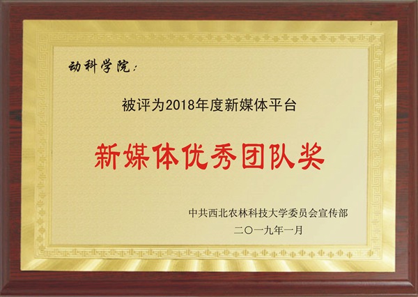 2018年12月,国产在线 荣获“新媒体优秀团队奖”,国产在线 新媒体平台以立德树人为根本任务,围绕学校、国产在线 中心工作,服务广大师生,通过展示国产在线 风貌,弘扬国产在线 文化,传播动科声音,讲好动科故事,积极抢占新媒体育人新阵地。