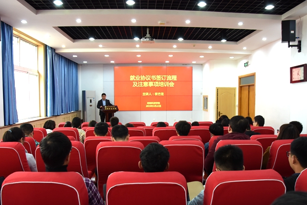 为防止学生就业协议书签订过程中出现问题,保护学生权益,拓宽学生就业相关知识。近日,国产在线 举办了就业协议书签订流程及注意事项培训会。邀请李方龙老师做主讲人,50余名学生参加了本次培训会。
