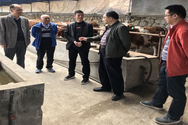 在杨家河镇勤兴肉牛养殖专业合作社,团队专家实地查看了解了该合作社的肉牛养殖、繁育及效益情况,对该合作社不断扩大肉牛养殖规模、带动贫困户依靠养牛致富的成功经验和扶贫帮困模式给予充分肯定,希望合作社利用好今年政府工作报告释放的政策“大礼包”,加快粪污处理技术升级改造,做到肉牛养殖废弃物资源化高效利用,进一步提高养殖效率;同时建议要加强肉牛冻精配种和良种扩繁工作,在做好春秋防疫措施的同时,平时也要重视牛舍的消毒灭菌工作。