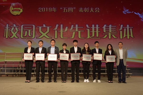 国产在线 荣获2018年度校园文化先进集体(图左二为冯来顺老师上台领奖)